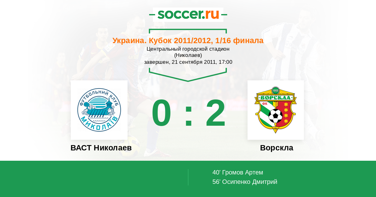 Протокол матча ВАСТ Николаев против Ворскла