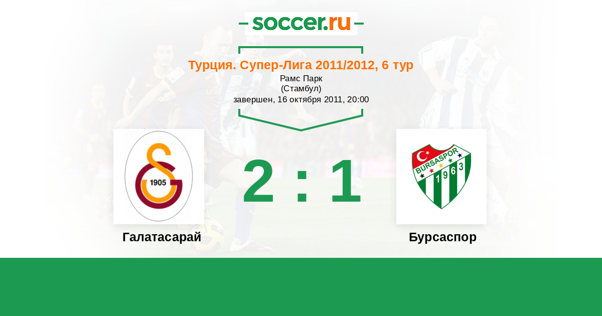 Турция. Суперлига 28.01.2012 Бурсаспор Логотип футбольный клуб Бурсаспор 1:0 Логотип футбольный клуб Галатасарай (Стамбул) Галатасарай