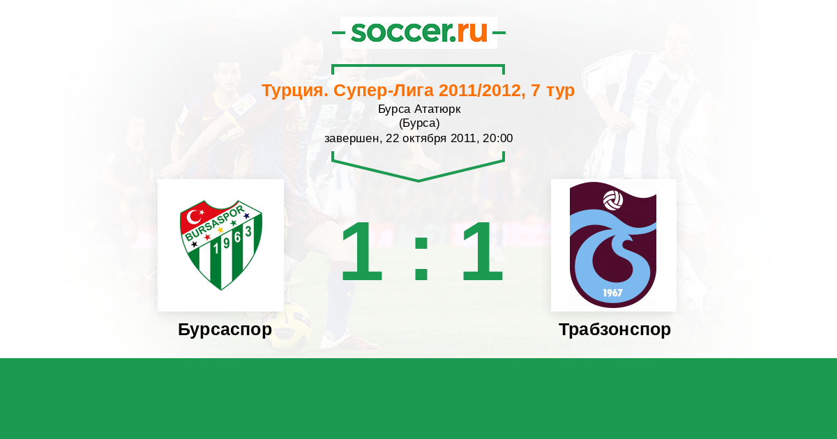 Турция. Суперлига 01.02.2012 Трабзонспор Логотип футбольный клуб Трабзонспор 2:1 Логотип футбольный клуб Бурсаспор Бурсаспор