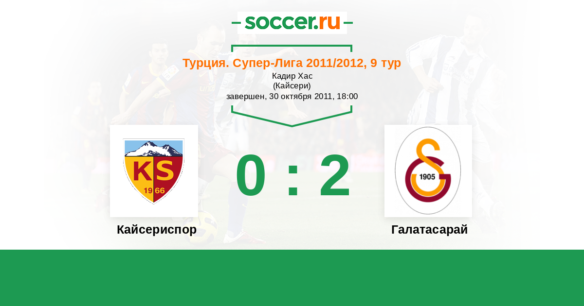 Турция. Суперлига 11.02.2012 Галатасарай Логотип футбольный клуб Галатасарай (Стамбул) 1:0 Логотип футбольный клуб Кайсериспор Кайсериспор