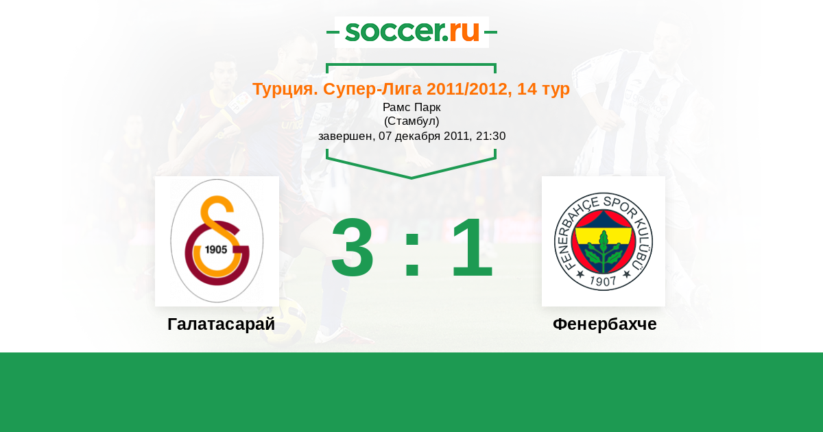 Турция. Суперлига 18.03.2011 Галатасарай Логотип футбольный клуб Галатасарай (Стамбул) 1:2 Логотип футбольный клуб Фенербахче (Стамбул) Фенербахче