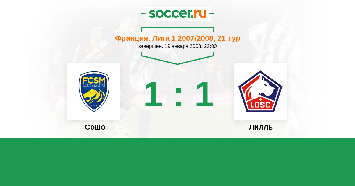 Франция. Лига 1 15.08.2007 Лилль Логотип футбольный клуб Лилль 1:1 Логотип футбольный клуб Сошо (Монбельяр) Сошо