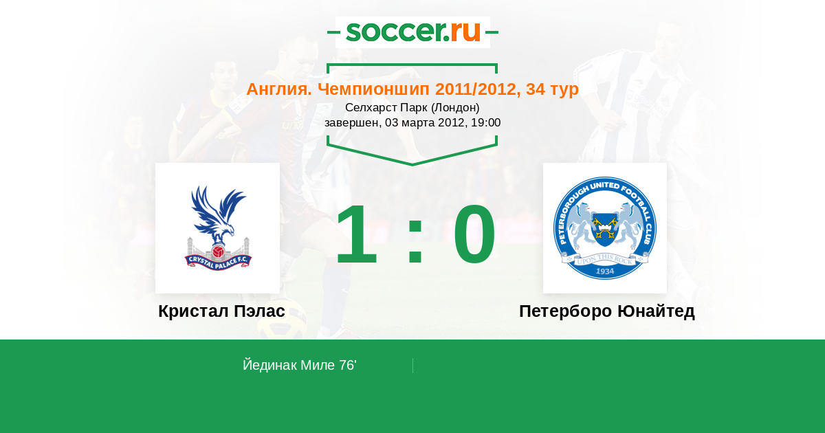 Протокол матча Кристал Пэлас против Петерборо Юнайтед
