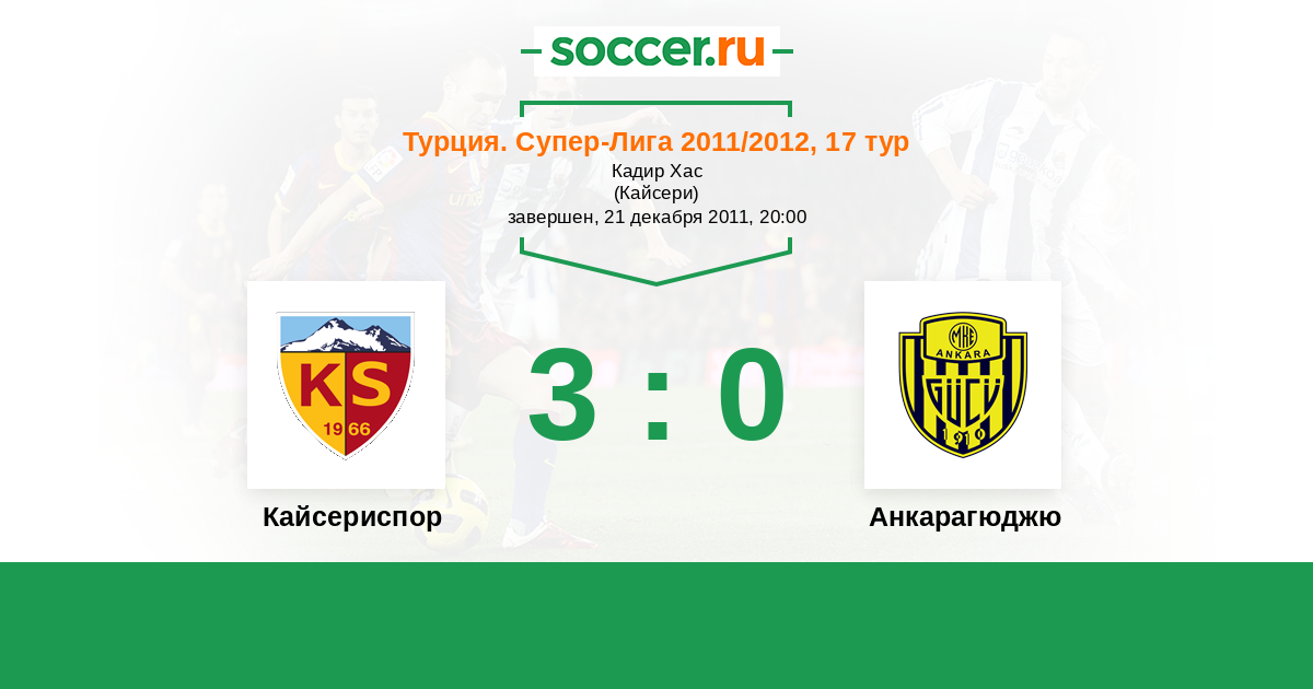 Турция. Суперлига 07.04.2012 Анкарагюджю Логотип футбольный клуб Анкарагюджю 0:5 Логотип футбольный клуб Кайсериспор Кайсериспор