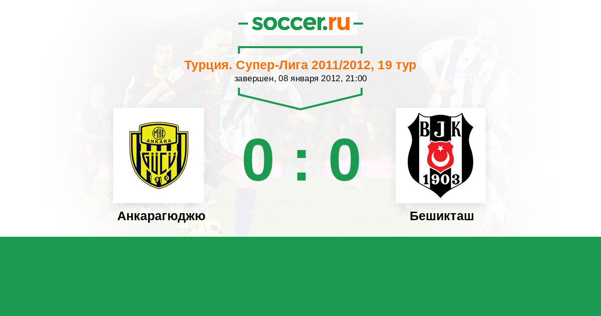 Турция. Суперлига 19.09.2011 Бешикташ Логотип футбольный клуб Бешикташ (Стамбул) 3:1 Логотип футбольный клуб Анкарагюджю Анкарагюджю