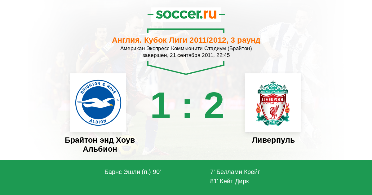 Протокол матча Брайтон энд Хоув Альбион против Ливерпуль
