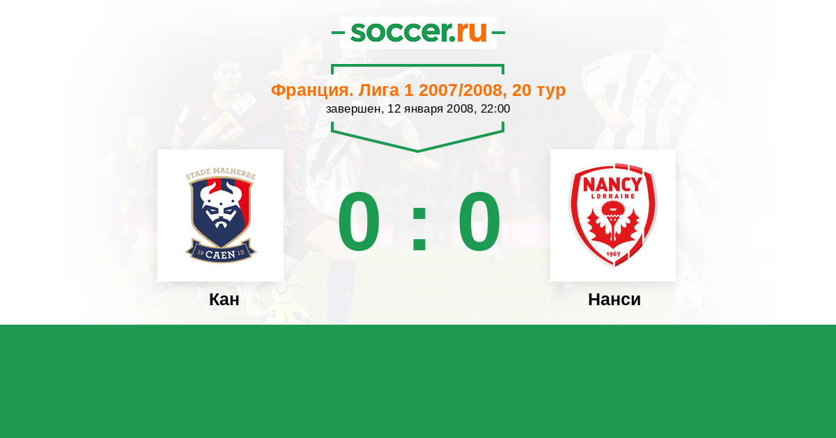 Франция. Лига 1 11.08.2007 Нанси Логотип футбольный клуб Нанси 1:0 Логотип футбольный клуб Кан Кан