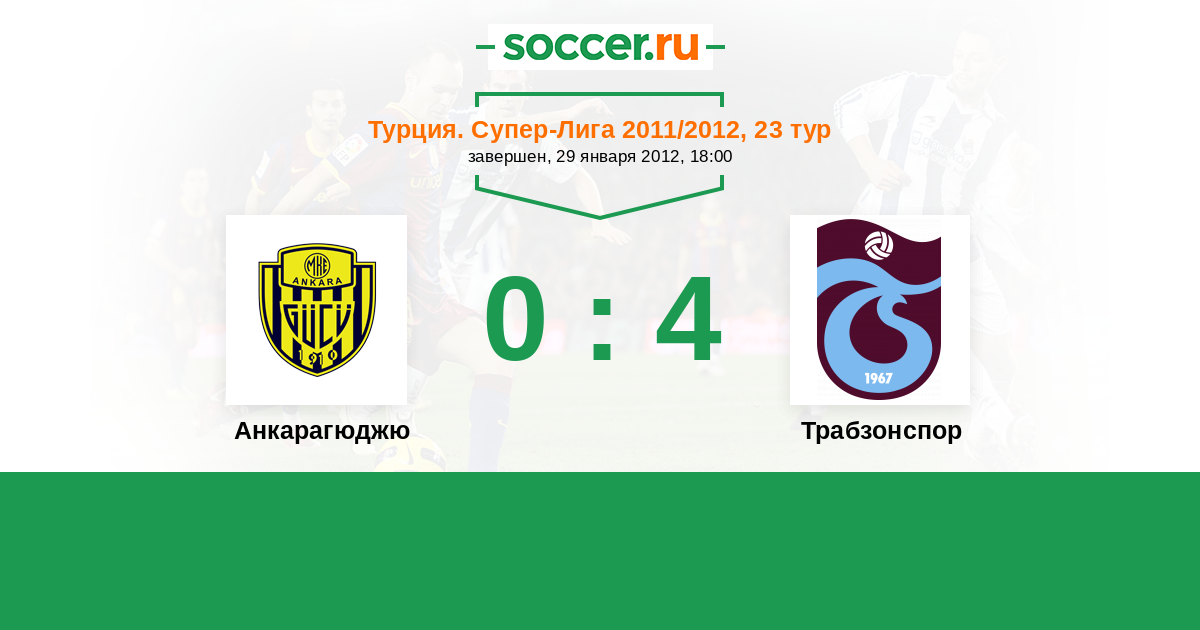 Турция. Суперлига 22.01.2011 Трабзонспор Логотип футбольный клуб Трабзонспор 1:1 Логотип футбольный клуб Анкарагюджю Анкарагюджю
