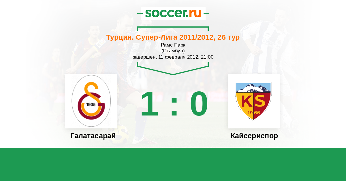 Турция. Суперлига 30.10.2011 Кайсериспор Логотип футбольный клуб Кайсериспор 0:2 Логотип футбольный клуб Галатасарай (Стамбул) Галатасарай
