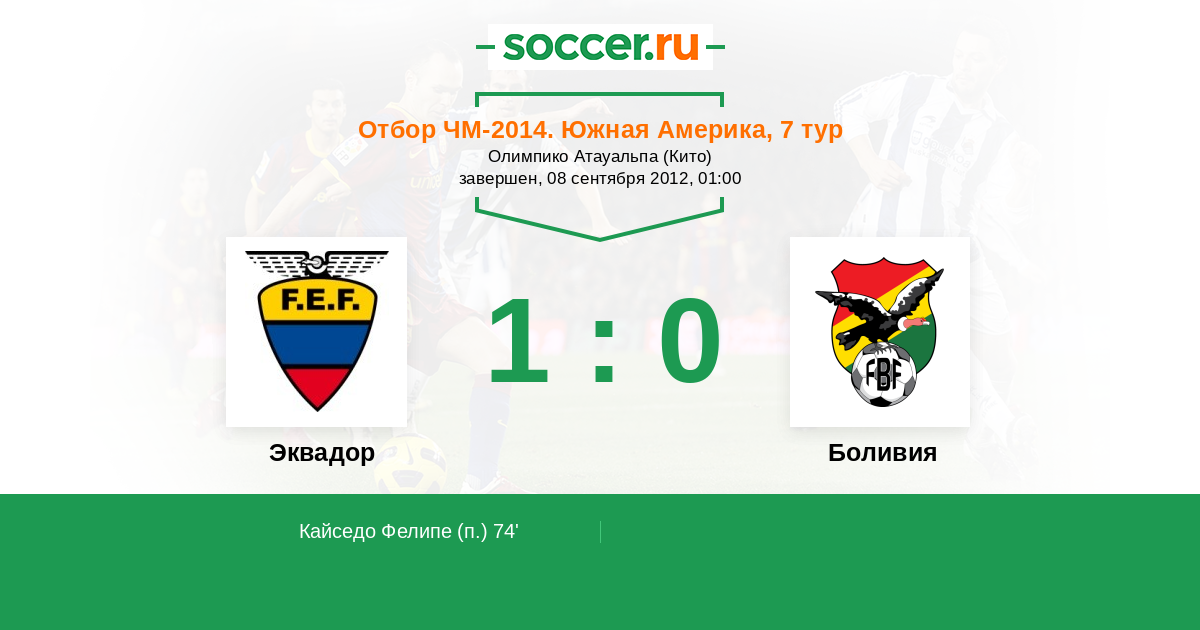 Протокол матча Эквадор против Боливия