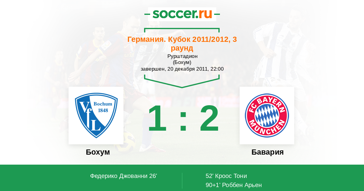 Протокол матча Бохум против Бавария