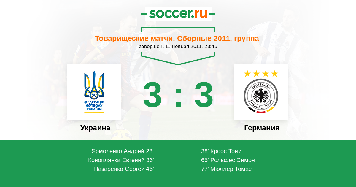 Протокол матча Украина против Германия