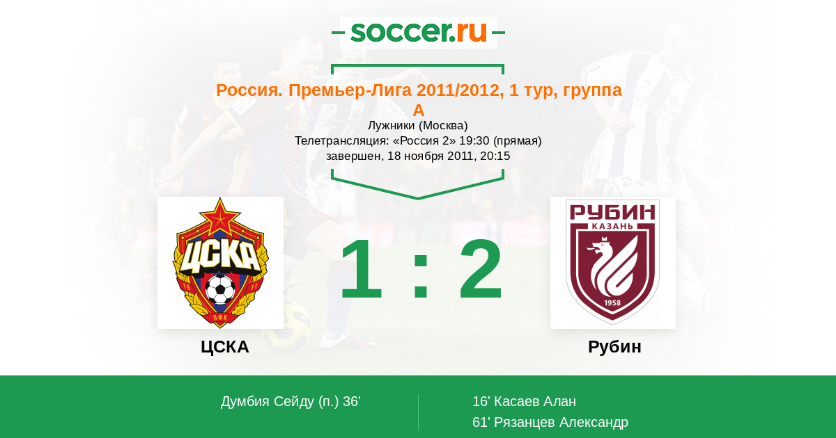 Протокол матча ЦСКА против Рубин