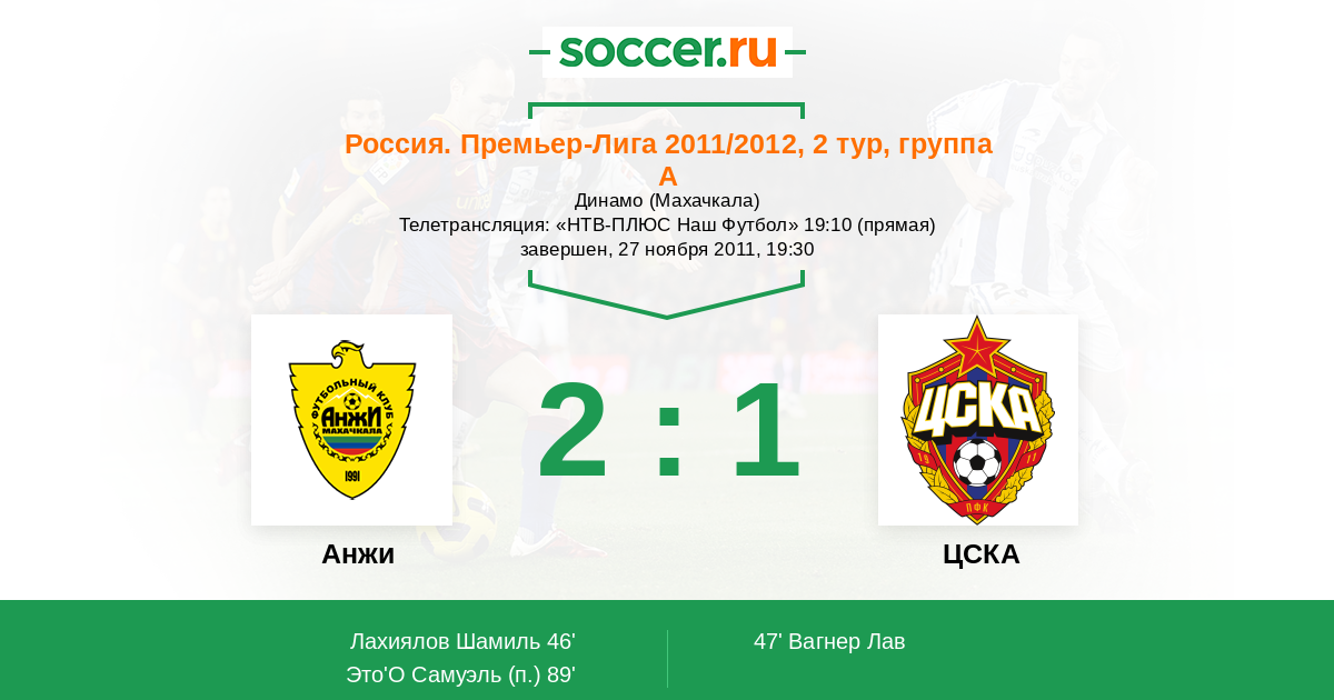 Протокол матча Анжи против ЦСКА