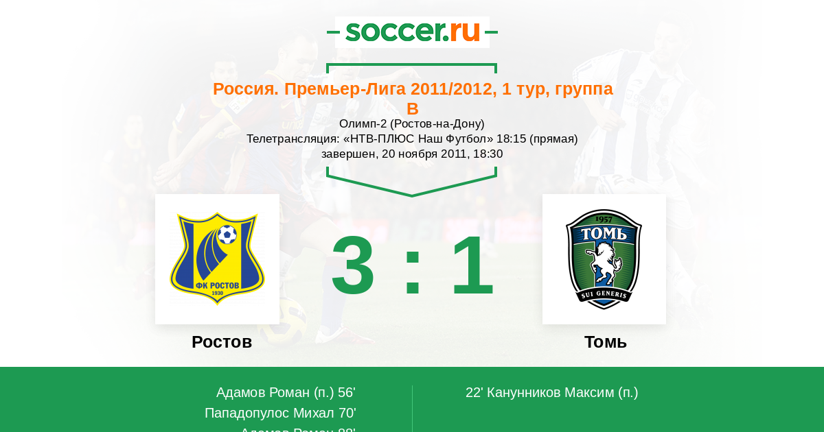 Протокол матча Ростов против Томь
