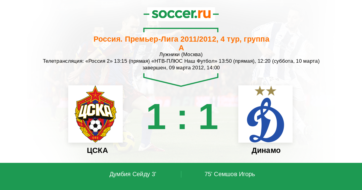 Протокол матча ЦСКА против Динамо