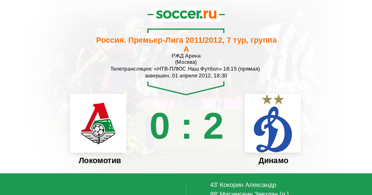 Протокол матча Локомотив против Динамо