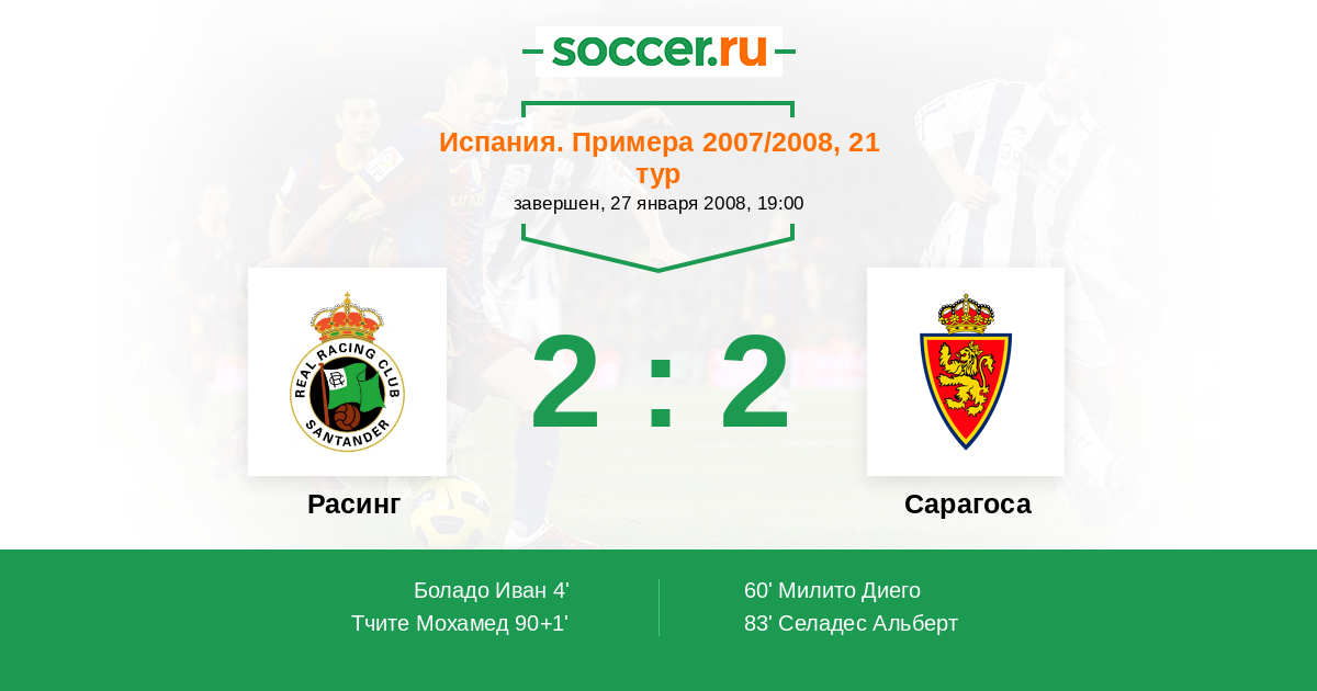 Протокол матча Расинг против Сарагоса