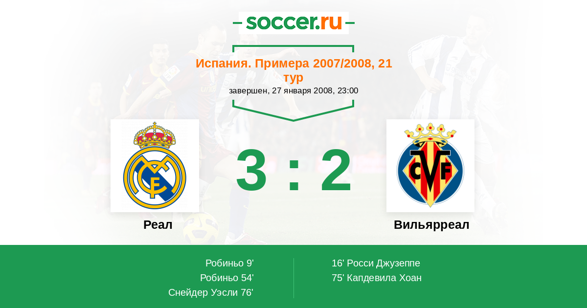 Протокол матча Реал против Вильярреал