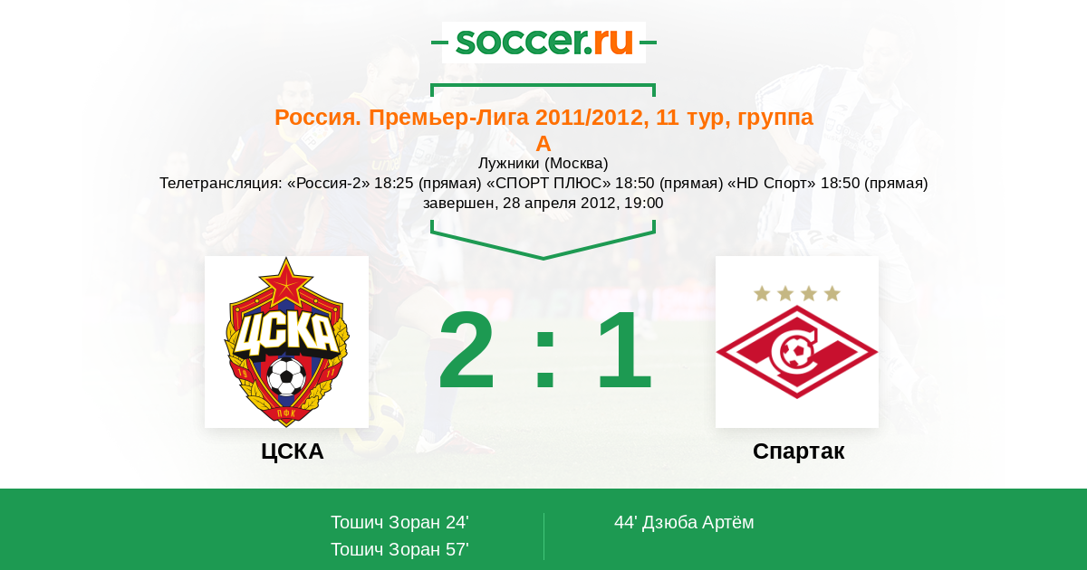 Протокол матча ЦСКА против Спартак