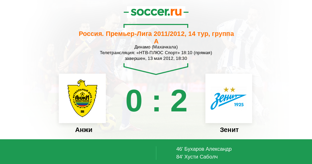 Протокол матча Анжи против Зенит