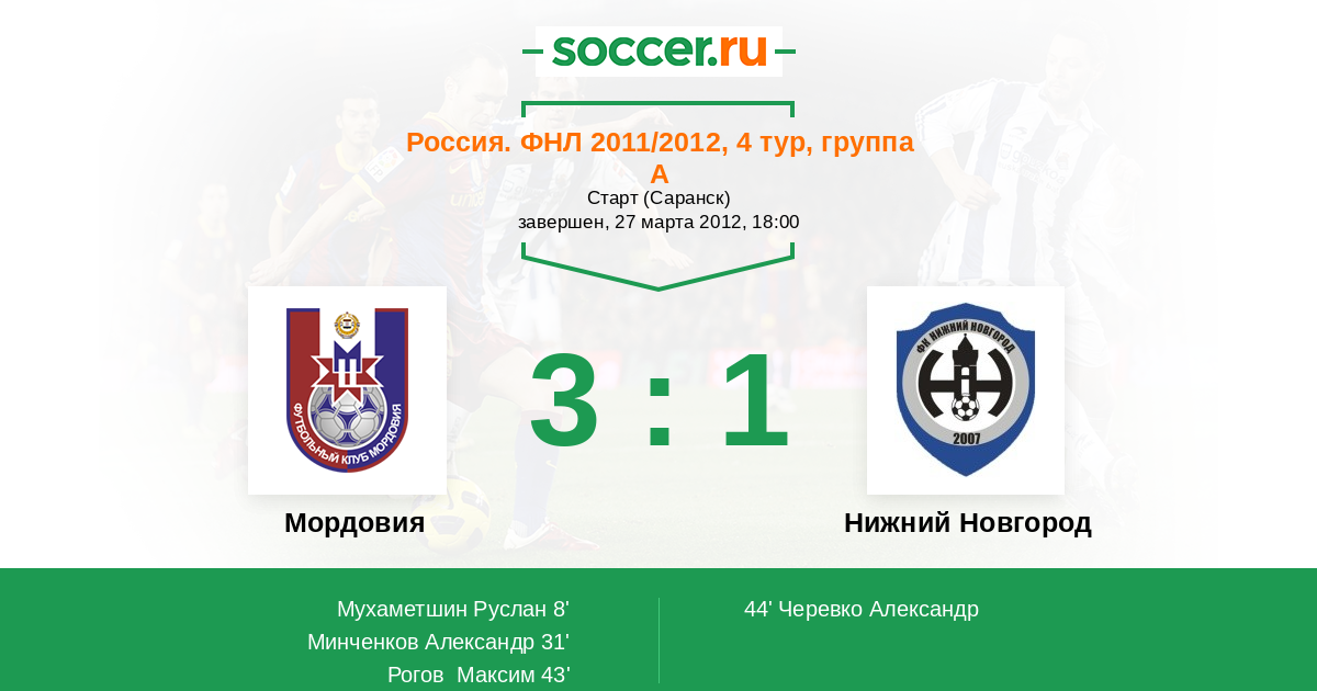 Протокол матча Мордовия против Нижний Новгород