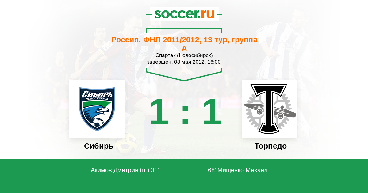Протокол матча Сибирь против Торпедо