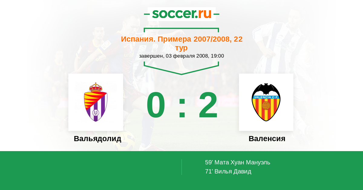 Протокол матча Вальядолид против Валенсия