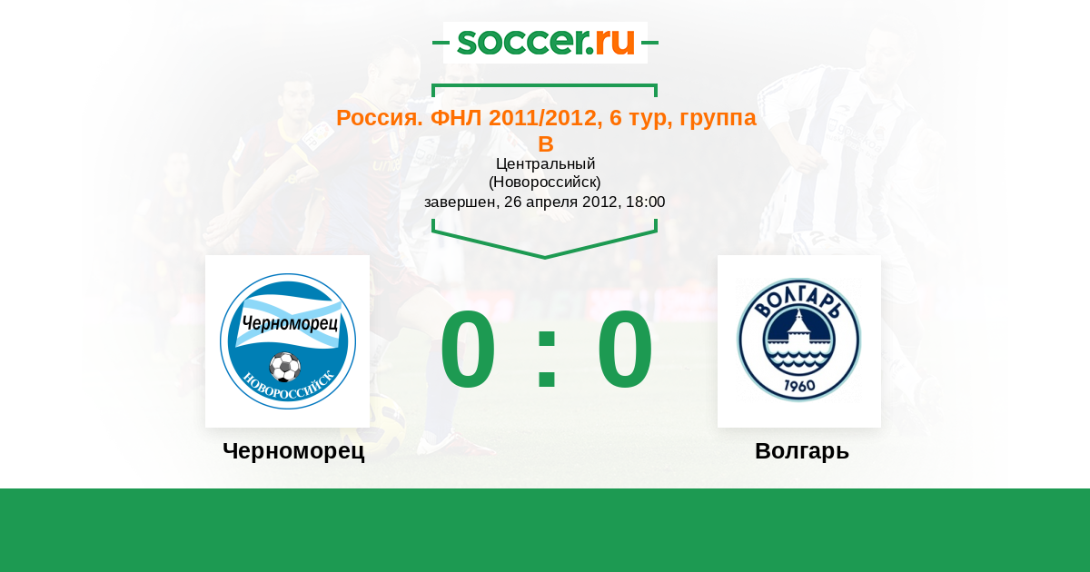 Россия. Вторая лига. Группа 1 22.07.2013 Черноморец Логотип футбольный клуб Черноморец (Новороссийск) 1:1 Логотип футбольный клуб Волгарь (Астрахань) Волгарь