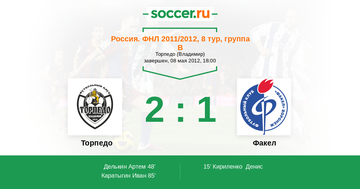 Протокол матча Торпедо против Факел