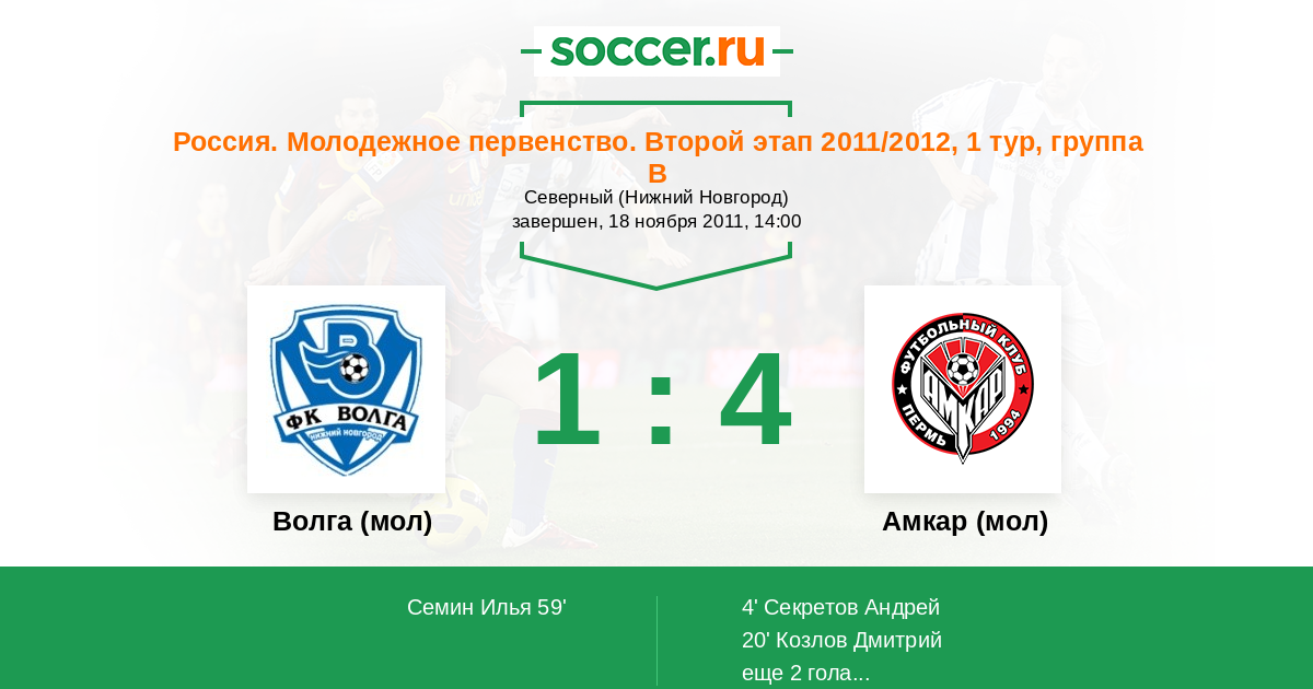Протокол матча Волга (мол) против Амкар (мол)