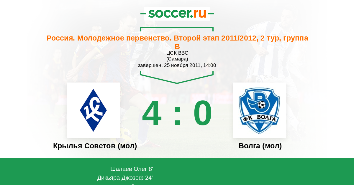 Протокол матча Крылья Советов (мол) против Волга (мол)