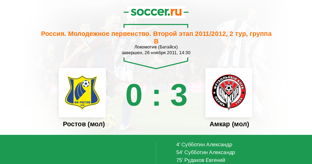 Протокол матча Ростов (мол) против Амкар (мол)