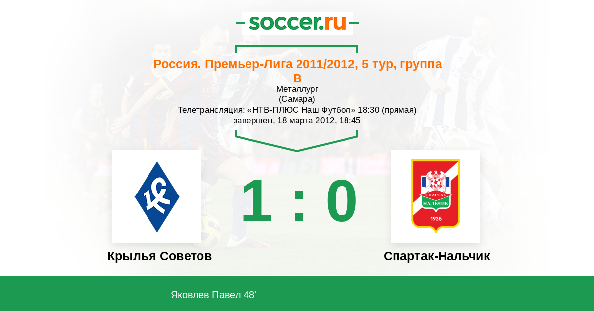 Протокол матча Крылья Советов против Спартак-Нальчик
