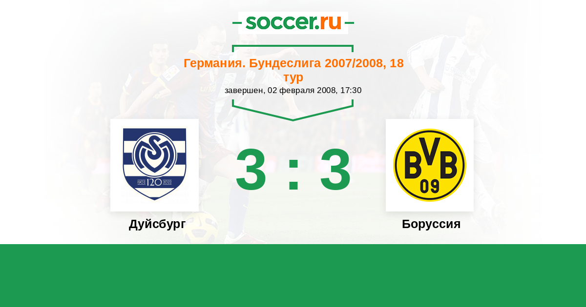 Германия. Бундеслига 12.08.2007 Боруссия Логотип футбольный клуб Боруссия (Дортмунд) 1:3 Логотип футбольный клуб Дуйсбург Дуйсбург