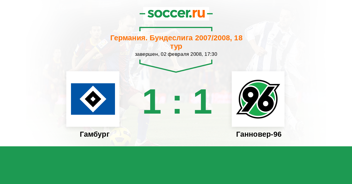 Германия. Бундеслига 17.03.2007 Ганновер-96 Логотип футбольный клуб Ганновер-96 0:0 Логотип футбольный клуб Гамбург Гамбург
