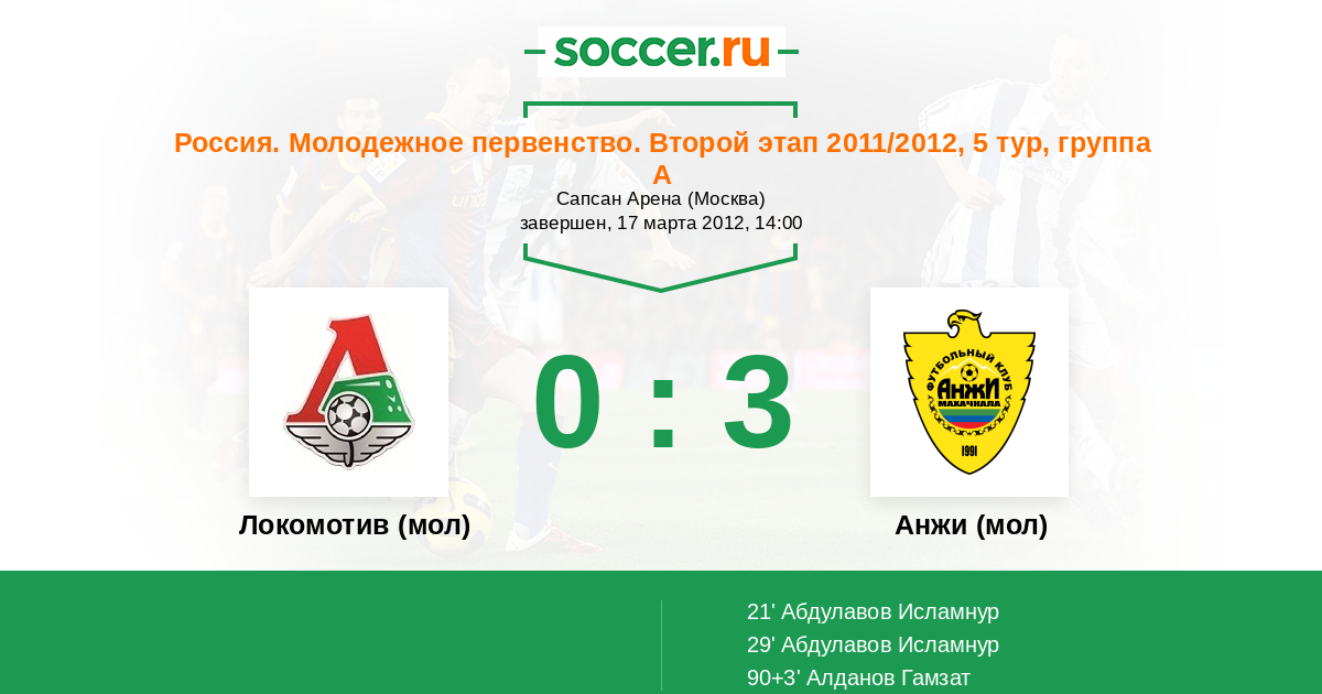 Протокол матча Локомотив (мол) против Анжи (мол)