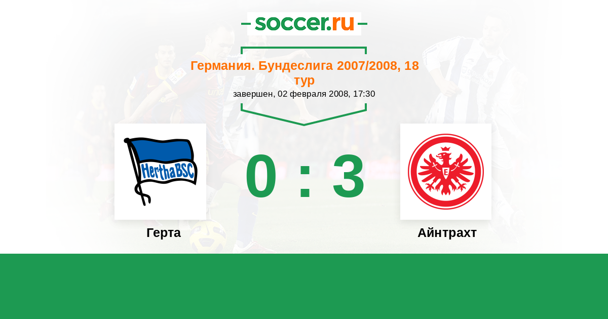 Германия. Бундеслига 17.08.2008 Айнтрахт Логотип футбольный клуб Айнтрахт (Франкфурт) 0:2 Логотип футбольный клуб Герта (Берлин) Герта
