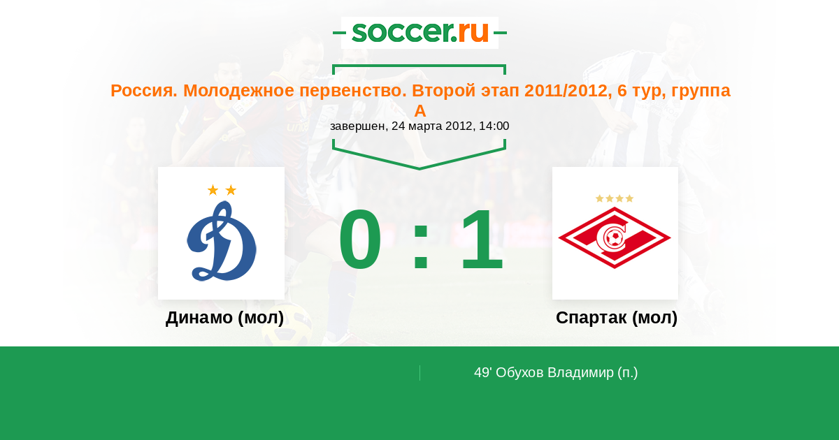 Протокол матча Динамо (мол) против Спартак (мол)