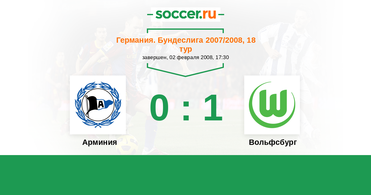 Германия. Бундеслига 21.03.2009 Арминия Логотип футбольный клуб Арминия (Билефельд) 0:3 Логотип футбольный клуб Вольфсбург Вольфсбург