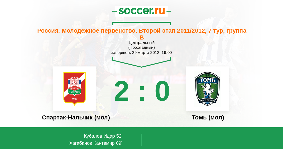 Протокол матча Спартак-Нальчик (мол) против Томь (мол)