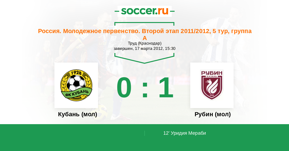 Протокол матча Кубань (мол) против Рубин (мол)