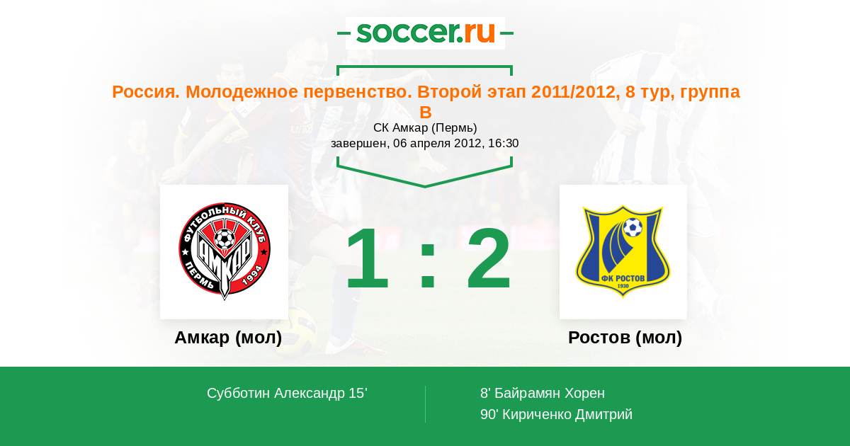 Протокол матча Амкар (мол) против Ростов (мол)