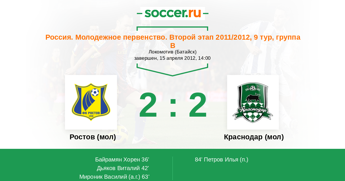 Протокол матча Ростов (мол) против Краснодар (мол)