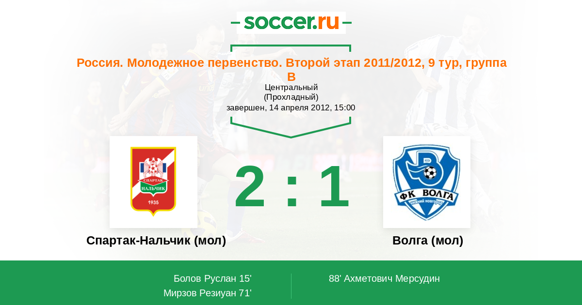 Протокол матча Спартак-Нальчик (мол) против Волга (мол)