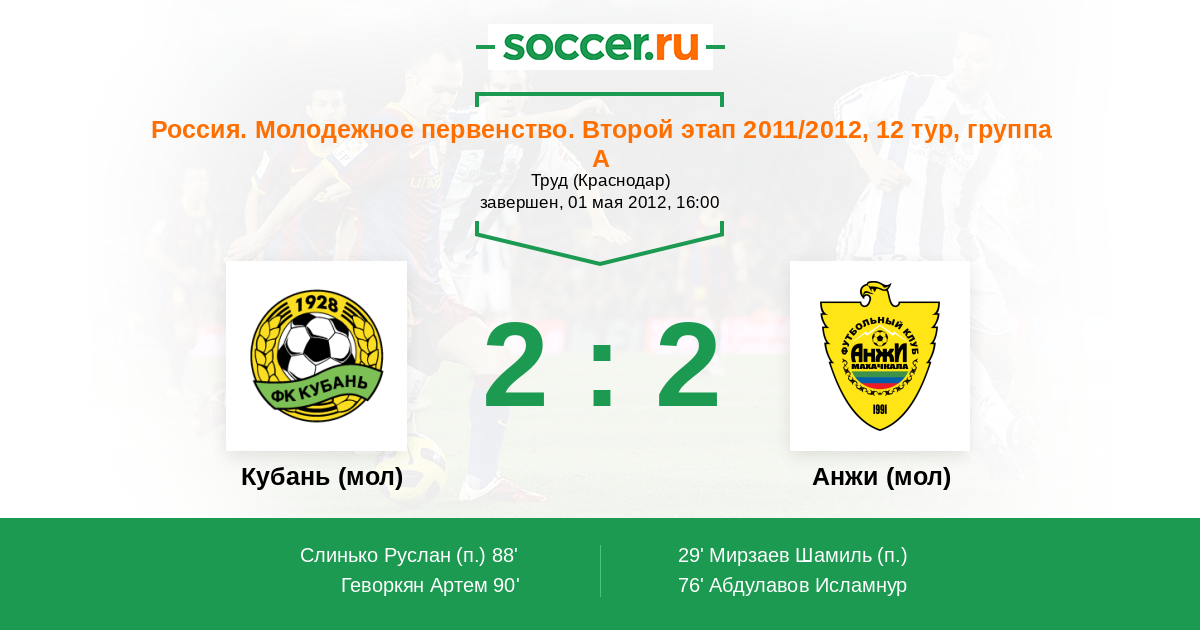 Протокол матча Кубань (мол) против Анжи (мол)