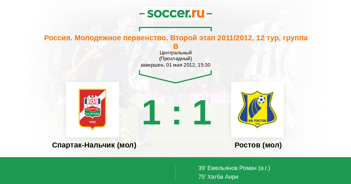 Протокол матча Спартак-Нальчик (мол) против Ростов (мол)