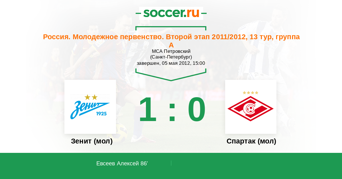 Протокол матча Зенит (мол) против Спартак (мол)