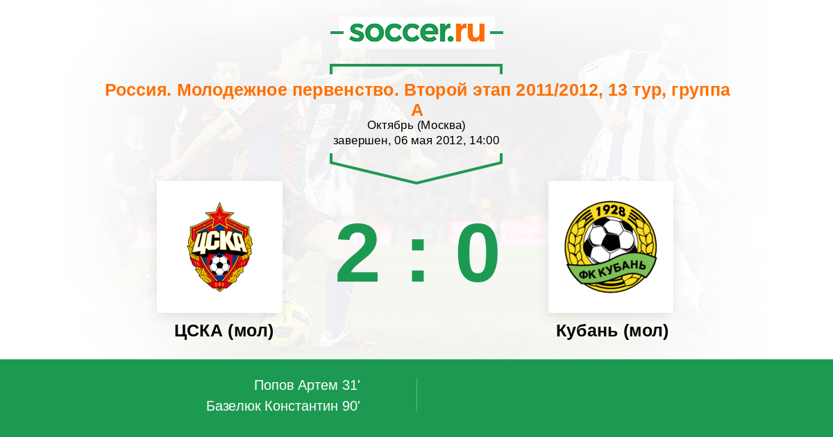 Протокол матча ЦСКА (мол) против Кубань (мол)