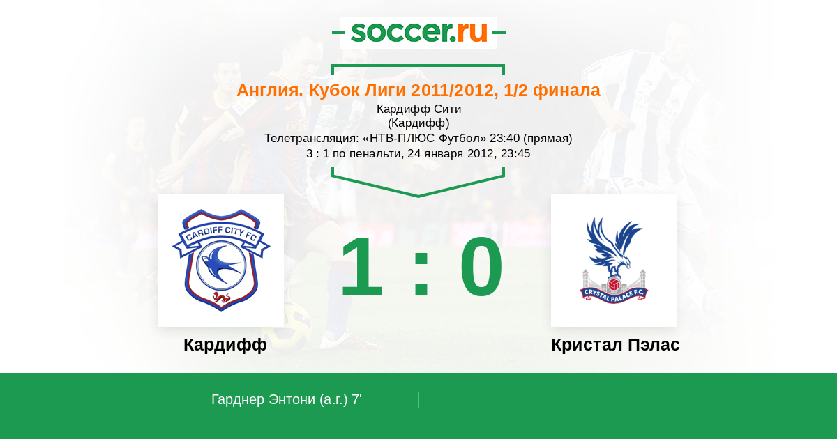 Протокол матча Кардифф против Кристал Пэлас